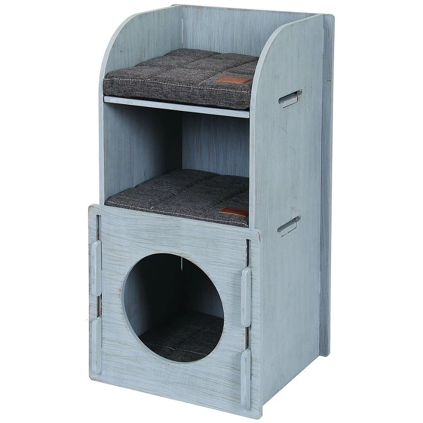 La tour our chat Lindy offre 3 compartiment différents à votre chat.En plus de pouvoir se cacher pour dormir, votre chat pourra se reposer ou observer sur une des 2 plateforme.Hauteur 80 cm Arbre à chat avec trois compartiments. Très solide et stable, cet arbre à chat ira parfaitement avec un intérieur moderne et fera le bonheur de votre ami à moustache. Niche fermée dans laquel votre chat pourra dormir en toute sécurité 2 plateformes avec coussin pour que votre chat puisse observer en hauteur Faible encombrement Dimensions : Hauteur : 80 cm Largeur : 40 cm