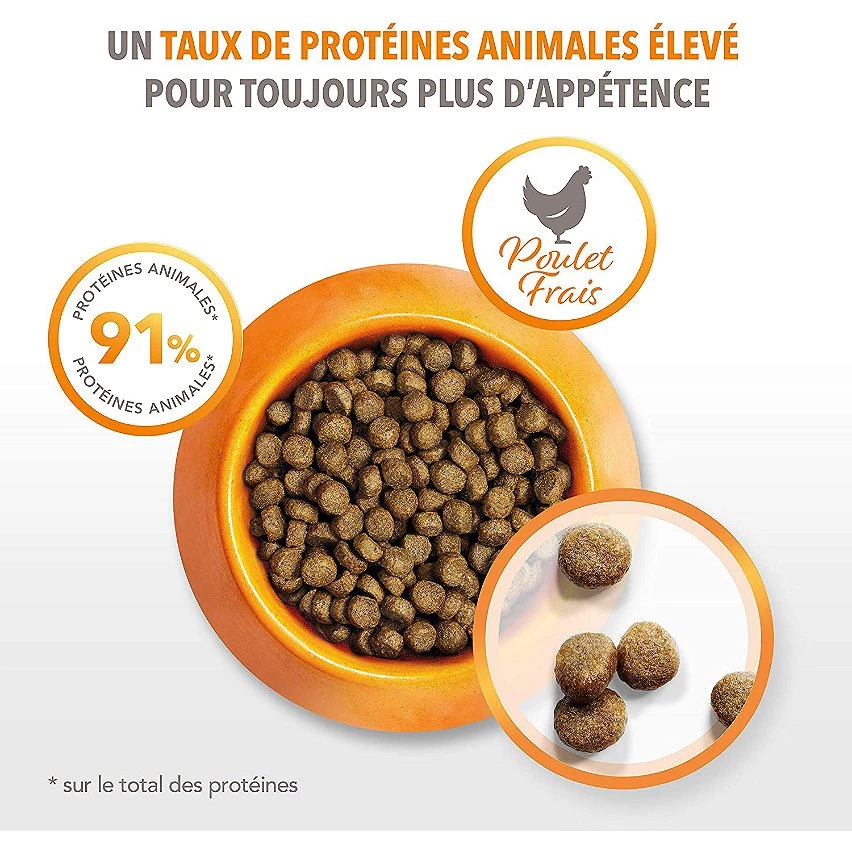 De plus, cette recette savoureuse inclut 91 % de protéines animales (sur la teneur totale en protéines).