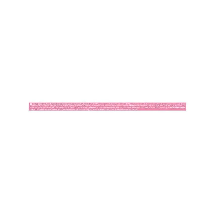 Poulet (17%), protéines de volaille déshydratées, blé complet (13%), gluten de maïs, gluten de blé, graisse animale, farine de soja, amidon de maïs, racine de chicorée déshydratée, maïs, sels minéraux, hydrolysat (avec ajout de 0,025% de poudre de Lactobacillus Delbrueckii et Fermentum traitée thermiquement), levures, huile de poisson.