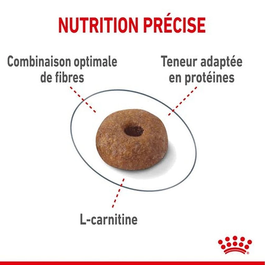 Les croquettes Royal Canin Light Weight Care sont recommandées pour les chats adulte de 1 à 7 ans.Elles aident à limiter la prise de poids.Peut s’utiliser occasionnellement de 7 à 12 ans.Conditionnement : 3 kg Croquettes Royal Canin Light Weight Care pour chat adulte de 1 à 7 ans. Aide à limiter la prise de poids Maintient une condition corporelle idéale et la masse musculaire est un aspect crucial de la santé globale d’une chat. Formule nutritionnelle précisément équilibrée, enrichie en protéines hautement digestibles pour une perte de poids dans de bonnes conditions de santé. Effet satiétogène : contient un mélange de fibres, dont du psyllium, pour augmenter le volume de nourriture dans l’estomac, ce qui aide à réduire naturellement la consommation spontanée. Faible teneur en matière grasse : aide à atteindre ou maintenir le poids idéal. Contient de la L-carnitine. L’utilisation exclusive de LIGHT WEIGHT CARE permet de réduire spontanément la prise calorique de 17%* et de satisfaire l’appétit du chat. Formulé avec un équilibre de minéraux pour contribuer à la santé du système urinaire du Chat adulte. Peut s’utiliser occasionnellement de 7 à 12 ans.