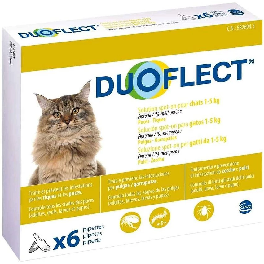 UGS : 3411112264643 Catégories : Animalerie, Antiparasitaire pour chat, Chat, Duoflect, Marque, Pipette antiparasitaire pour chat