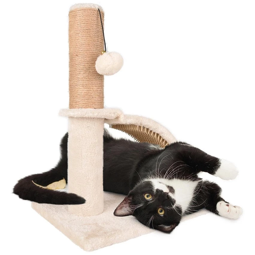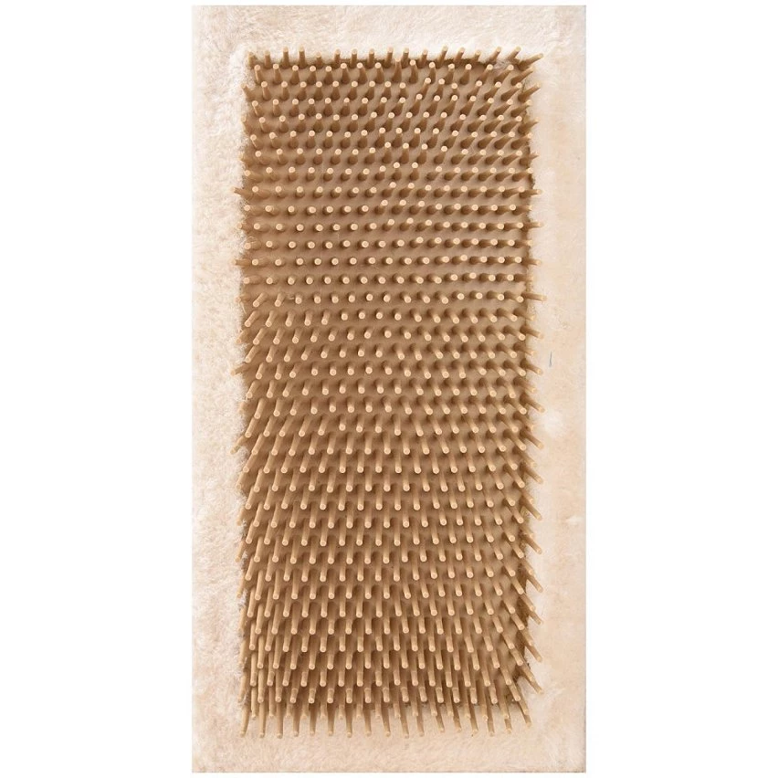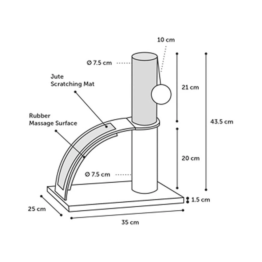 la partie grattoir courbé avec une face griffoir et la face dessous avec des picots en caoutchouc a la base sur 23 cm de hauteur, ce griffoir permet à votre chat de se débarrasser de ses poils morts tout en profitant d’un agréable massage que le procurera le frottement des picots.