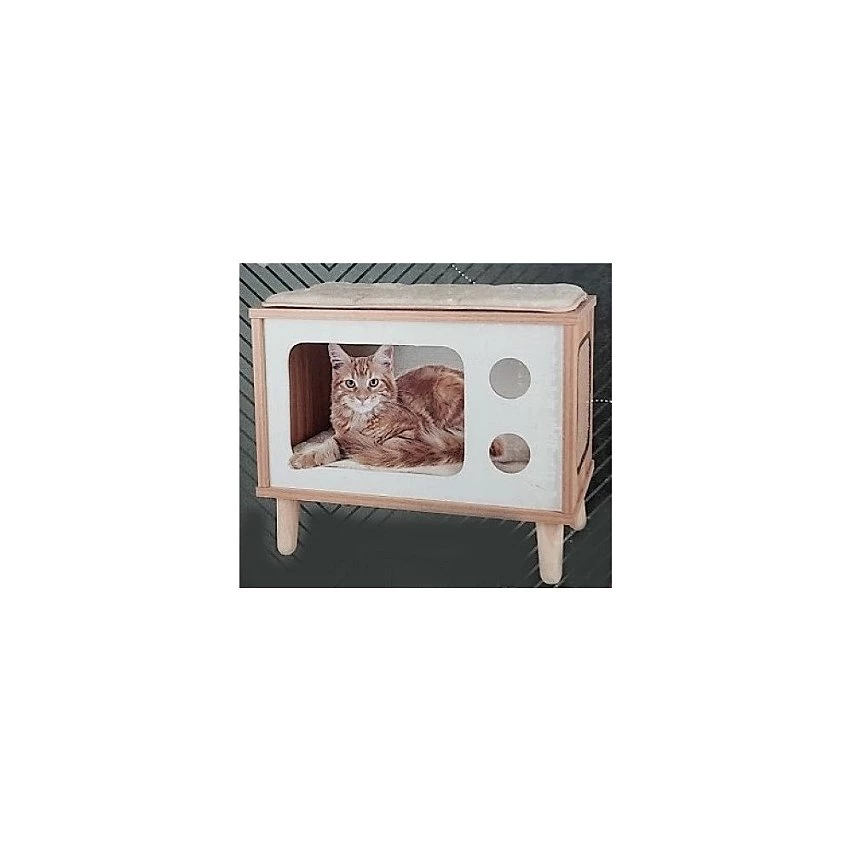 Meuble pour chat. Ce meuble pour chat en forme de téléviseur est le refuge idéal dans lequel votre compagnon à quatre pattes pourra dormir et se reposer à tout moment de la journée.