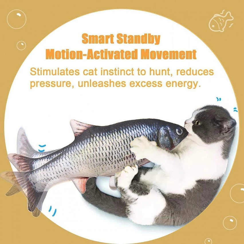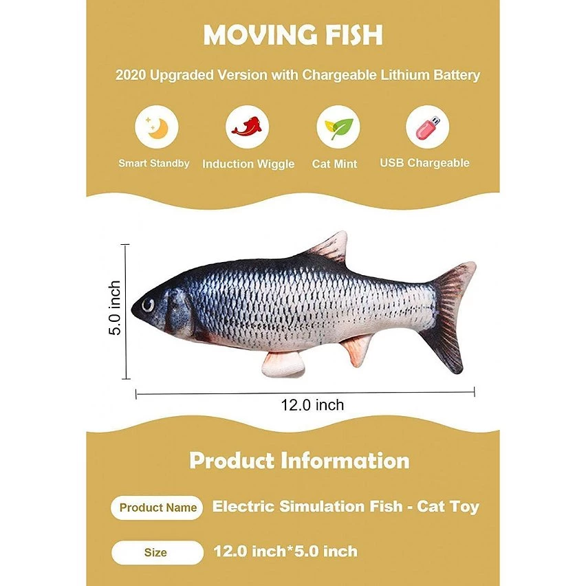 - Fabriqué dans une matière résistante, MAGIC FISH™ est composé d’un mécanisme lui permettant de remuer son corps de manière aléatoire, reproduisant ainsi le geste d’un poisson vivant hors de l’eau.