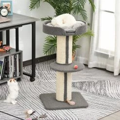 Coupon 👏 Pawhut Arbre à chat avec griffoir centre d’activités 2 plateformes coussin gris ⭐