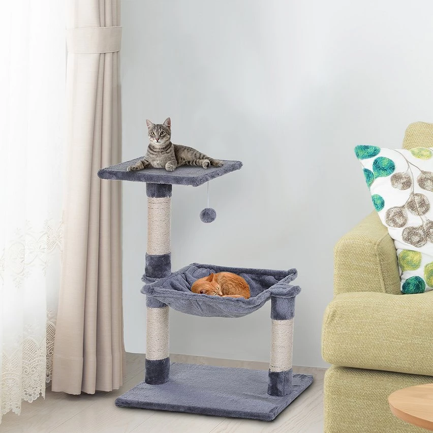 – Equipements multiples : plateforme, 3 griffoirs, grattoirs, hamac et jeu de boule suspendue