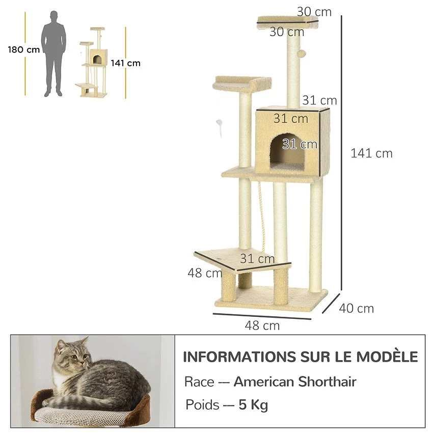 – La conception à 4 niveaux satisfait l’instinct d’escalade de votre chat