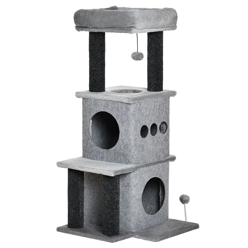 Votre boule de poils pourra s’amuser tous les jours avec cet arbre à chat centre d’activités multi-équipé. Multi-niveaux, doté de nombreux équipements (2 grandes niches avec housses amovibles, jeu de boule suspendue et boule à ressort) et plusieurs plateformes, votre chat pourra se dépenser, se reposer ou faire ses griffes sans avoir à s’attaquer à vos meubles.