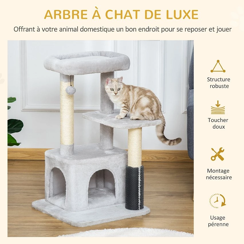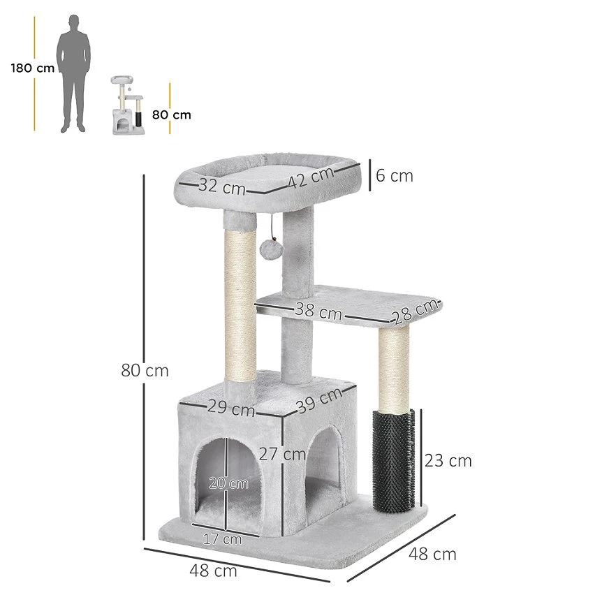 – Grand confort : revêtement en peluche courte haute densité 200 g/m² d’une grande douceur + griffoirs en sisal naturel pour le soin des griffes de votre chat et son bien-être