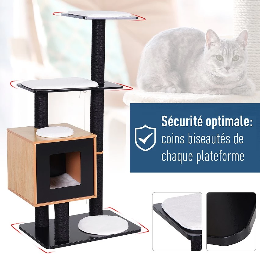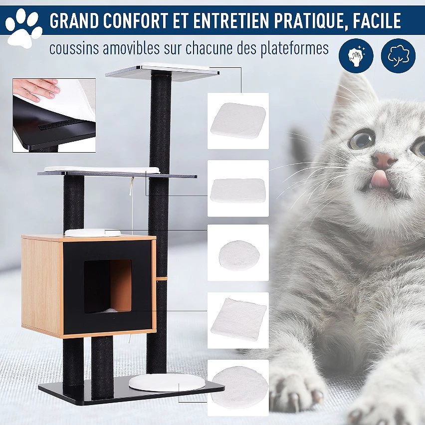 Ce magnifique arbre à chats design contemporain multi-équipé doté de griffoirs, grattoirs, d’une niche, de plate-formes et d’un jeu de boules suspendues permettra à votre chaton ou chat de se développer et de s’épanouir pleinement !