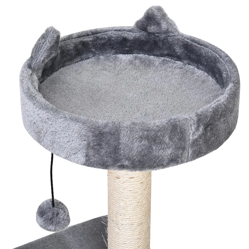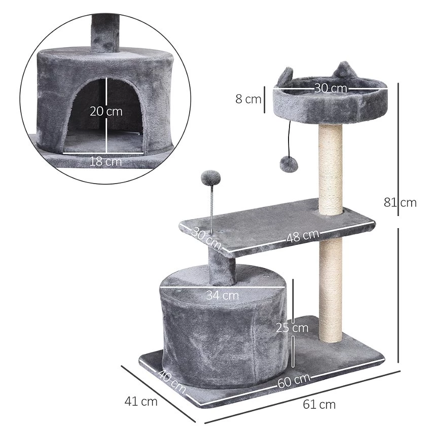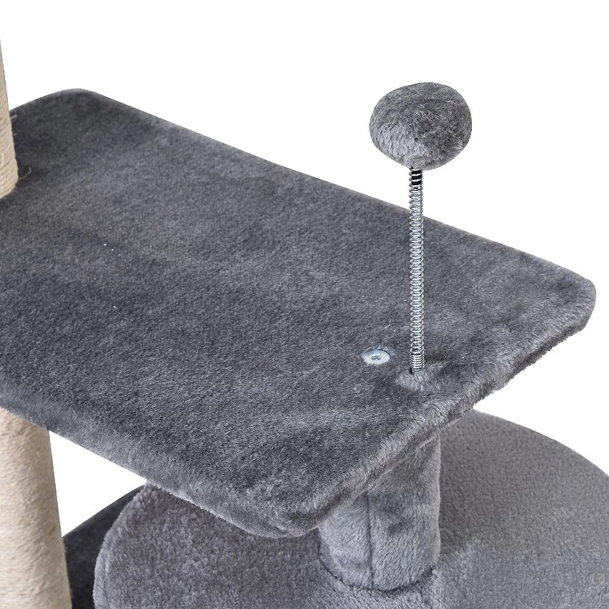 – Arbre à chat centre d’activités variées : griffoir, niche, 2 plateformes dont une d’observation avec rebord, jeu de boule suspendue et boule à ressort permettant à votre chat de jouer, faire ses griffes et de s’étirer