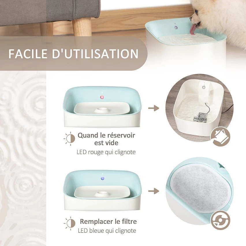 La plupart des chats n’aiment pas boire dans une simple écuelle. En effet, certains ont besoin d’un mouvement qui garde l’eau fraîche et pure. Cette fontaine à eau assure une circulation de l’eau qui attirera et redonnera l’envie de boire à votre félin même les plus réticents !