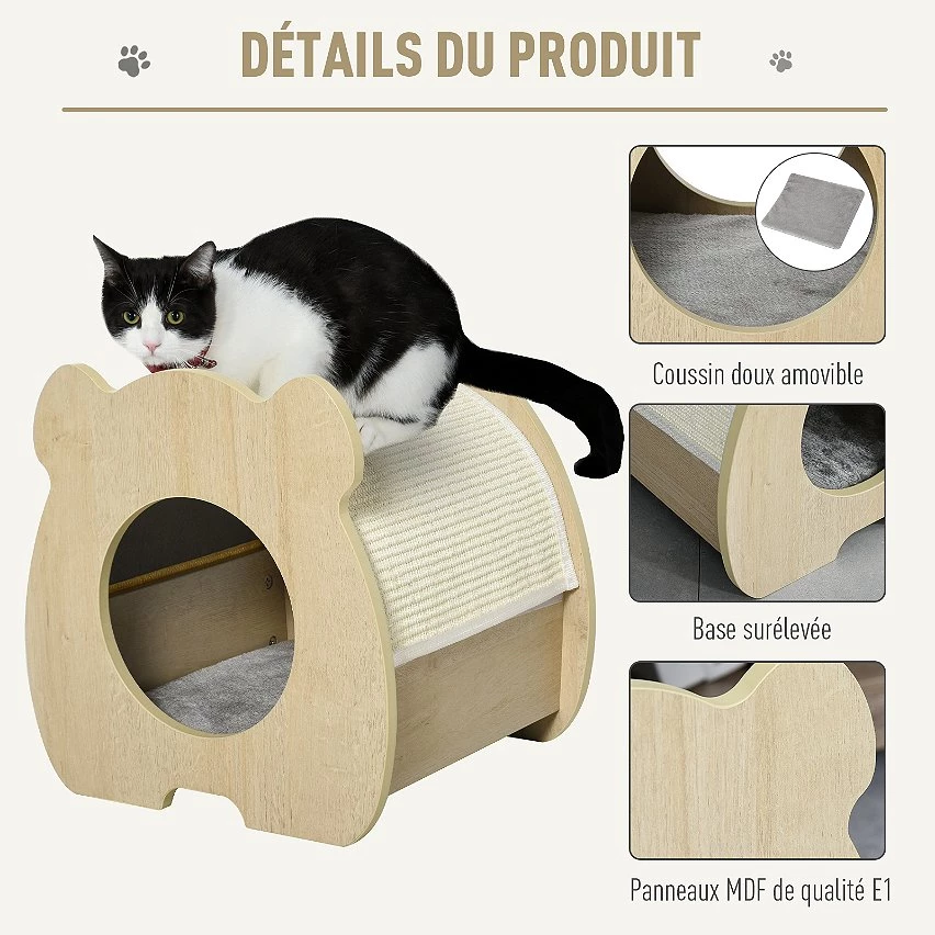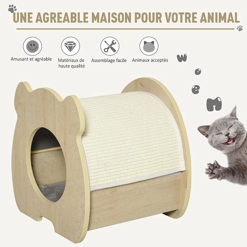 – Maisonnette sur pieds grattoir chat 2 en 1 design