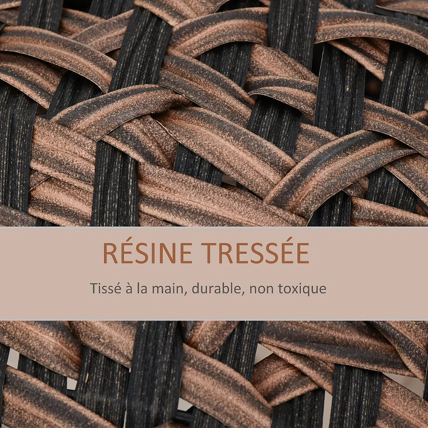 – Fabriqué en résine tressée imitation rotin assurant légèreté et perméabilité à l’air
