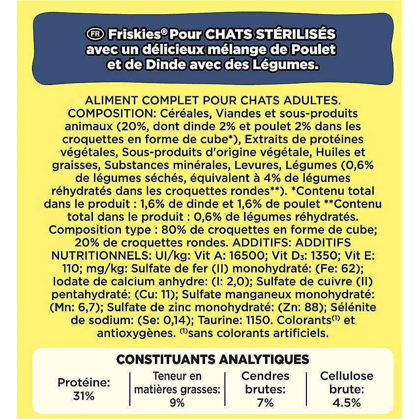 Croquette FRISKIES chat Adulte Stérilisé Poulet et Dinde Légumes 2kg