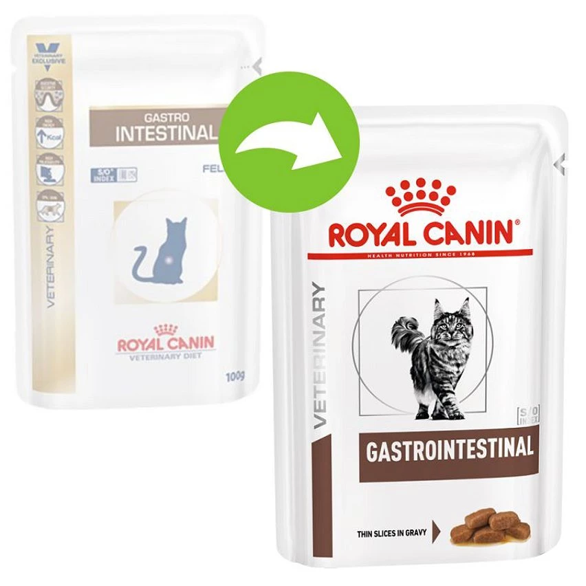 Royal Canin Veterinary Diet Gastro Intestinal est un aliment humide, diététique et complet conçu pour la gestion des troubles gastro-intestinaux du chat.