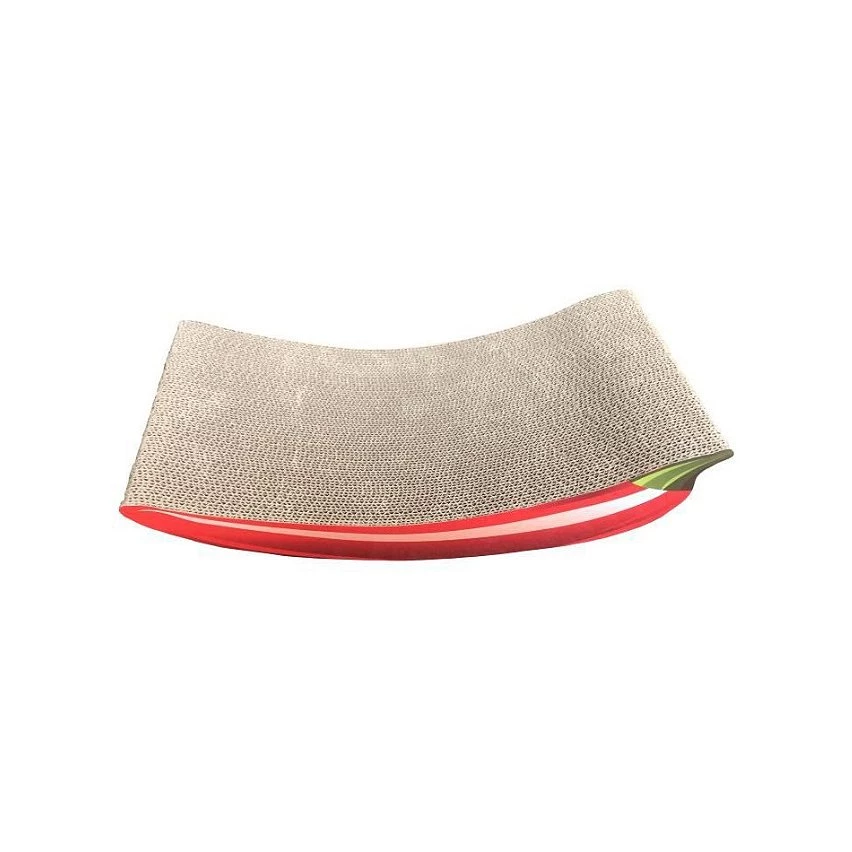 Griffoir pour chat en carton – 100 % recyclé, tres résistant – En forme de piment rouge – Il est réversible pour une durée d’utilisation prolongée – Votre chat va adorer faire ses griffes sur ce griffoir, et épargner ainsi vos meubles – Pret a l’emploi : pas de montage – 40 x 22 x 9 cm.