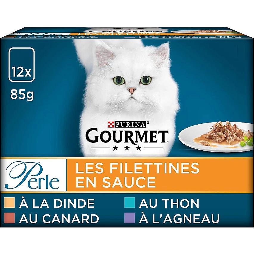 Gourmet – Perle Les Filettines avec des légumes Chat Adulte 12x85g – Pack de 6. Aliment complet pour chat, délicieuses recettes à base de tendres bouchées de viande ou de poisson en sauce, avec tous les nutriments essentiels, en sachets fraîcheur pratiques..