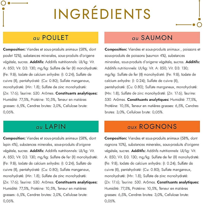 Gourmet les Mousselines – Patée pour chat adulte – Poulet, Saumon, Rognons, Lapin – 8 packs de 12x85gr . Séduisez votre chat avec un repas onctueux et raffiné !.