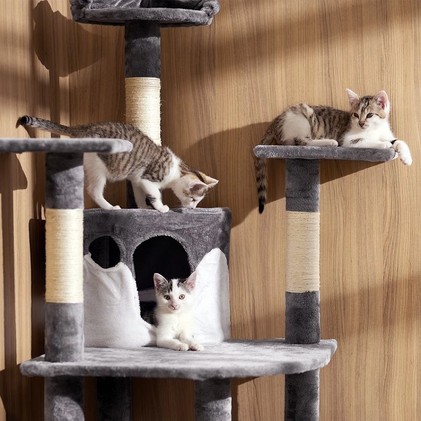 Arbre à Chat 201 cm FIPPI, Griffoir Grattoir, Sisal Tronc + Corde de jeu + Hamac 103 cm à 140 cm x 68 cm x 201 cm TECTAKE. L’arbre à chat est le passe-temps favori de tous les chats. Un arbre à chat permet aux chats de faire leurs griffes et à vos meubles de rester intacts. Il convient aussi parfaitement comme endroit pour dormir ou comme cachette confortable. Les chats sont des animaux très curieux et aiment avoir en vue tout ce qui doit être vu. C’est pourquoi un arbre à chat est exactement ce qui convient à votre compagnon à quatre pattes.