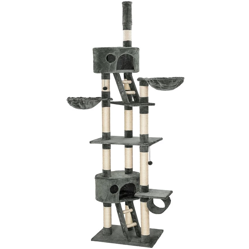 Arbre à chat 240 cm à 260 cm HANSI, Griffoir, Grattoir, Tronc + 2 balles en peluche TECTAKE. Des heures d’amusement en perspective pour votre chat. L’arbre à chat est le passe-temps favori de tous les chats. Un arbre à chat permet aux chats de faire leurs griffes et à vos meubles de rester intacts. Il convient aussi parfaitement comme endroit pour dormir ou comme cachette confortable. Les chats sont des animaux très curieux et aiment avoir en vue tout ce qui doit être vu. C’est pourquoi un arbre à chat est exactement ce qui convient à votre compagnon à quatre pattes.