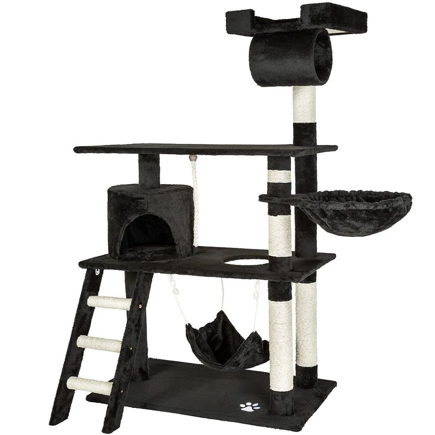 Arbre à chat 141 cm MARCEL, Griffoir, Grattoir, Sisal, Tronc + Corde de jeu + Hamac 105 cm x 60 cm x 141 cm TECTAKE. L’arbre à chat est le passe-temps favori de tous les chats. Un arbre à chat permet aux chats de faire leurs griffes et à vos meubles de rester intacts. Il convient aussi parfaitement comme endroit pour dormir ou comme cachette confortable. Les chats sont des animaux très curieux et aiment avoir en vue tout ce qui doit être vu. C’est pourquoi un arbre à chat est exactement ce qui convient à votre compagnon à quatre pattes. Cet arbre à chat offre de nombreuses possibilités pour jouer, se faire les griffes ou se cacher. Il plaira sans aucuns doutes à votre chat.