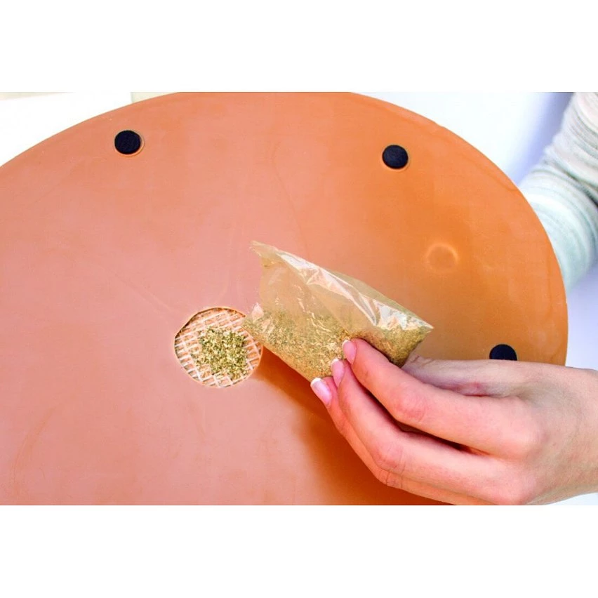 - 1 sachet d’herbe à chat (grâce au contenant situé en dessous du griffoir et grattoir 2 en 1)