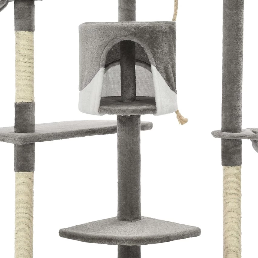 Vos amis félins peuvent aiguiser leurs griffes sur les griffoirs enroulés dans des cordes en sisal, qui fournissent une bonne pratique pour leurs instincts à gratter. Ils aimeront également courir après l’autre tout en sautant de haut en bas dans ce centre de jeu amusant. Au sommet de l’arbre à chat, il y a deux jouets suspendus qui vont éveiller vos chats curieux. Quand ils s’amusent suffisamment, vos petits amis adoreront se reposer sur les plates-formes supérieures, où ils auront une meilleure vue. Ils peuvent également se cacher dans les maisons confortables pour faire une sieste, ou se détendre sur les paniers confortables.
