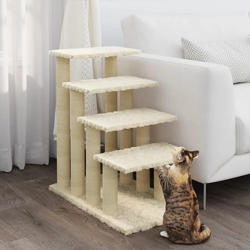Vos amis à quatre pattes peuvent aiguiser leurs griffes sur les poteaux à gratter enveloppés de corde de sisal, ce qui leur offre un exutoire sain pour leur instinct de grattage. De plus, ils se réjouiront également de se courir après tout en sautant de haut en bas dans ce centre de jeu amusant. Lorsqu’ils auront profité de suffisamment de temps de jeu, vos petits amis adoreront se reposer sur les plates-formes supérieures où ils auront une meilleure vue. Il peut également être utilisé comme escalier pour que le chat monte dans un lit surélevé ou un canapé.