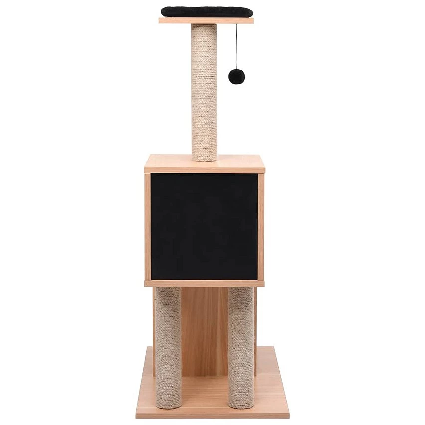 - Avec 2 maisons, une balle suspendue, des grattoirs en jute, un perchoir et des espaces de détente