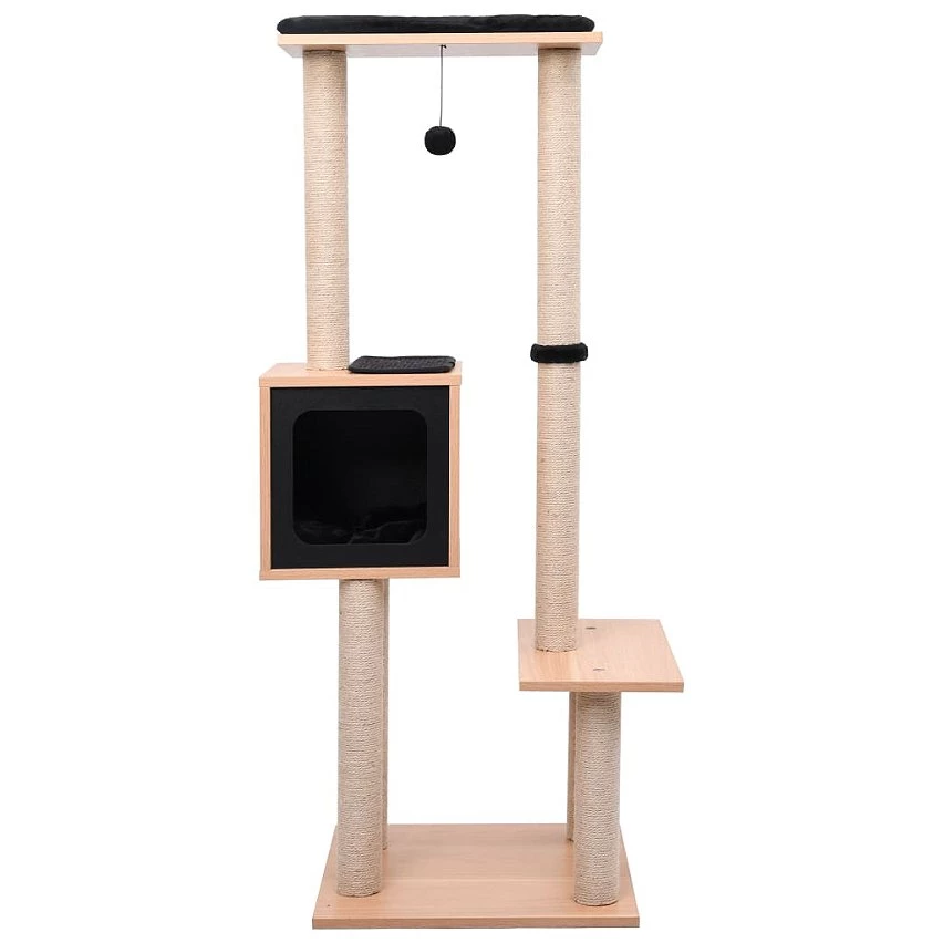 - Avec une maison, une balle suspendue, des grattoirs en jute, un perchoir et des espaces de détente