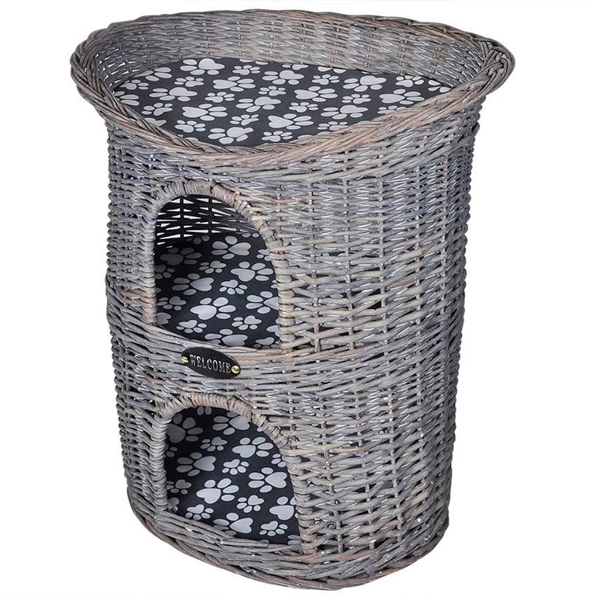 Cette maison / tour sur 2 niveaux pour chats donnera à votre animal de compagnie non seulement un endroit confortable pour dormir et se détendre, mais sa conception classique en saule conviendra à n’importe quel intérieur. Elle sera un excellent cadeau pour votre animal de compagnie !